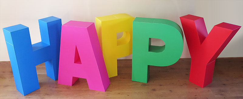 Voor Triggered Emotions, een bedrijf gespecialiseerd in electronica en interactie in wenskaarten, maakte Manoto kunstof letters. Met hun nieuwe thema 'Happy' werden deze letters ingezet op een beurs en voor de fotografie voor hun nieuwjaars kaart.